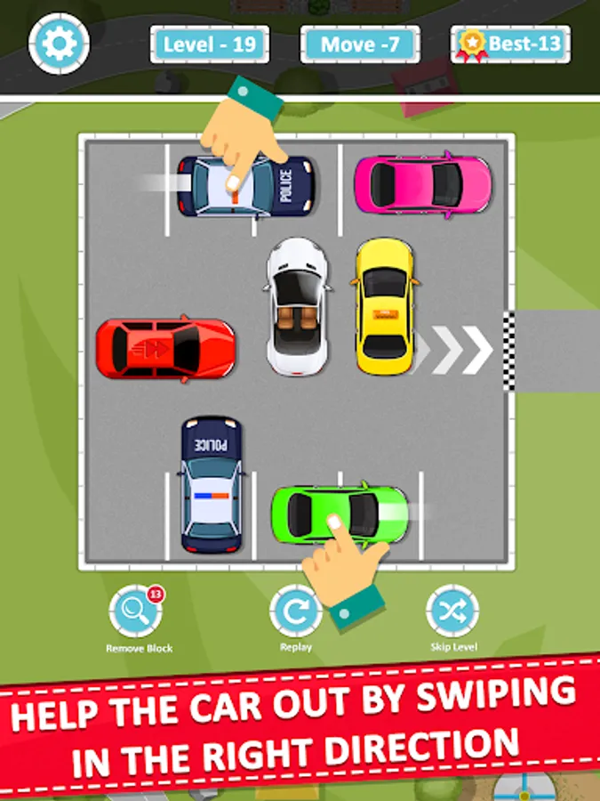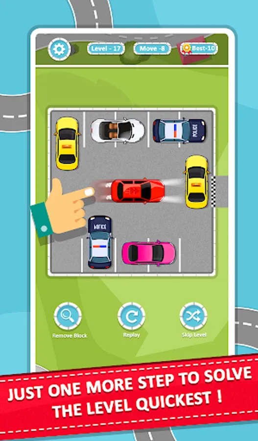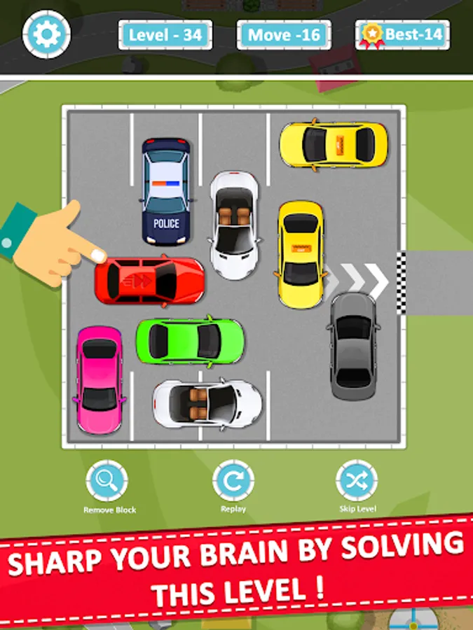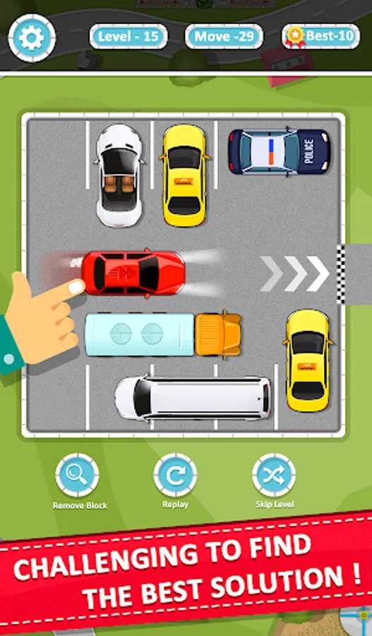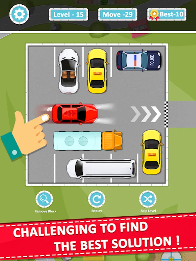 Solve a car parking jam and move the red car from parking.