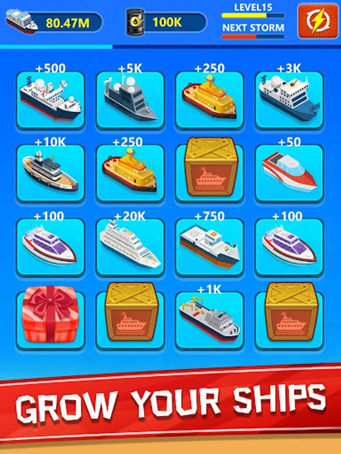 Each level complete you will get storms to get more ships.