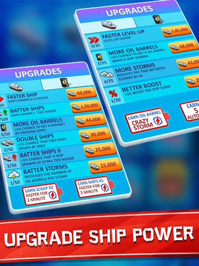 There is more than 10 different power so you can easily upgrade ships.