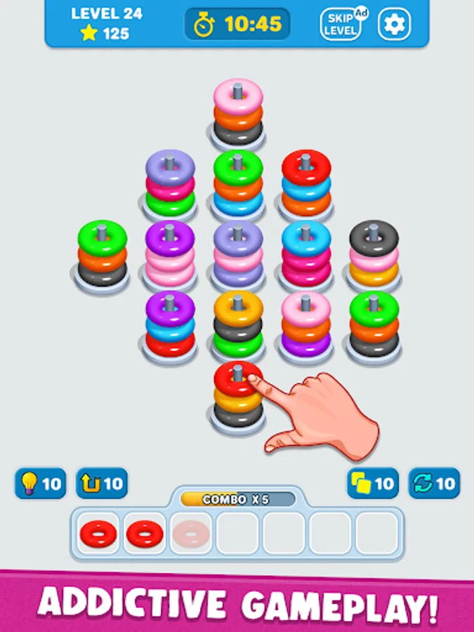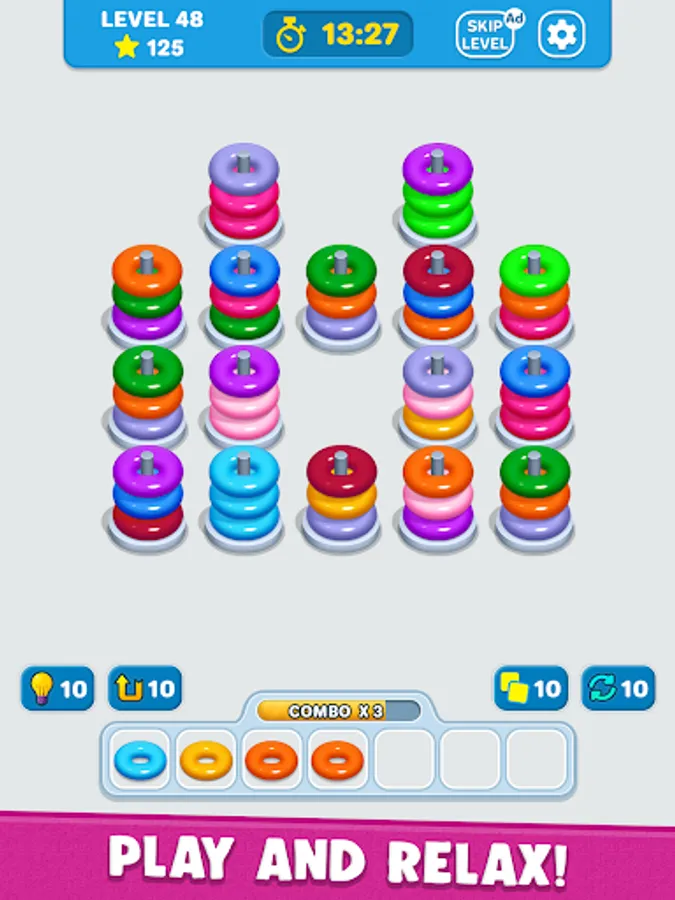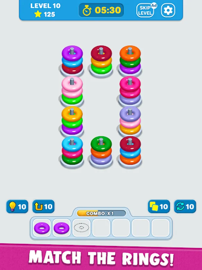 Match 3D ring is a 3 circle ring matching puzzle game.