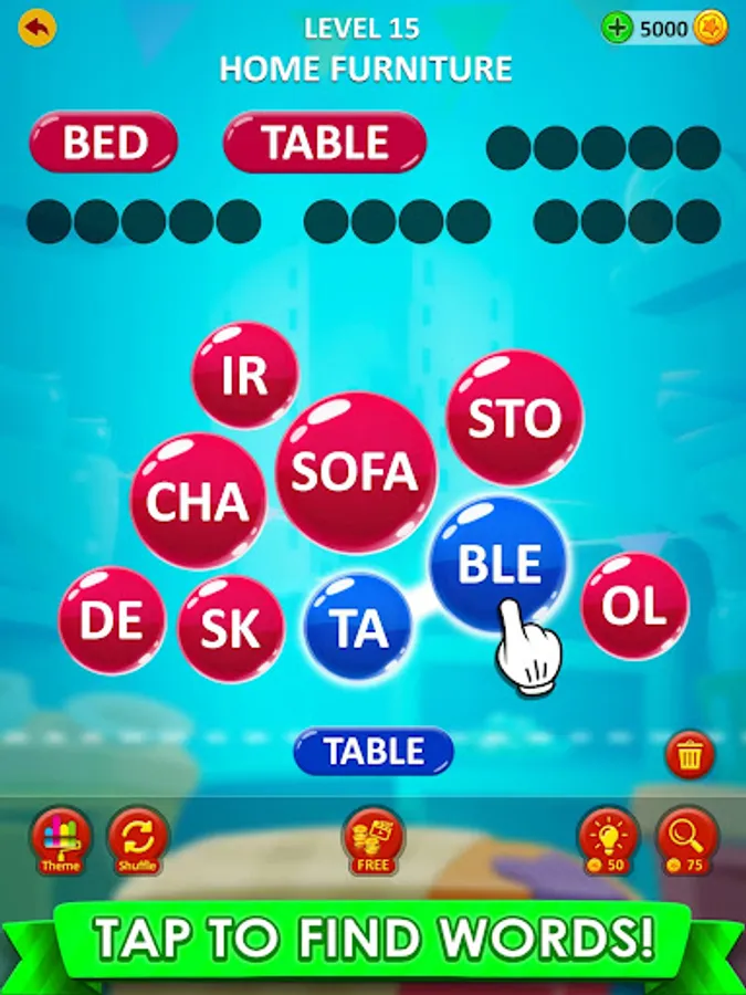 Tap or swipe words for choosing letters.