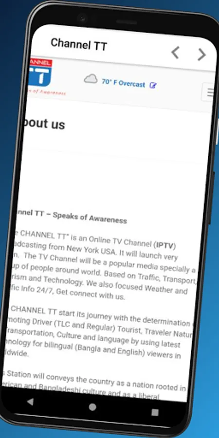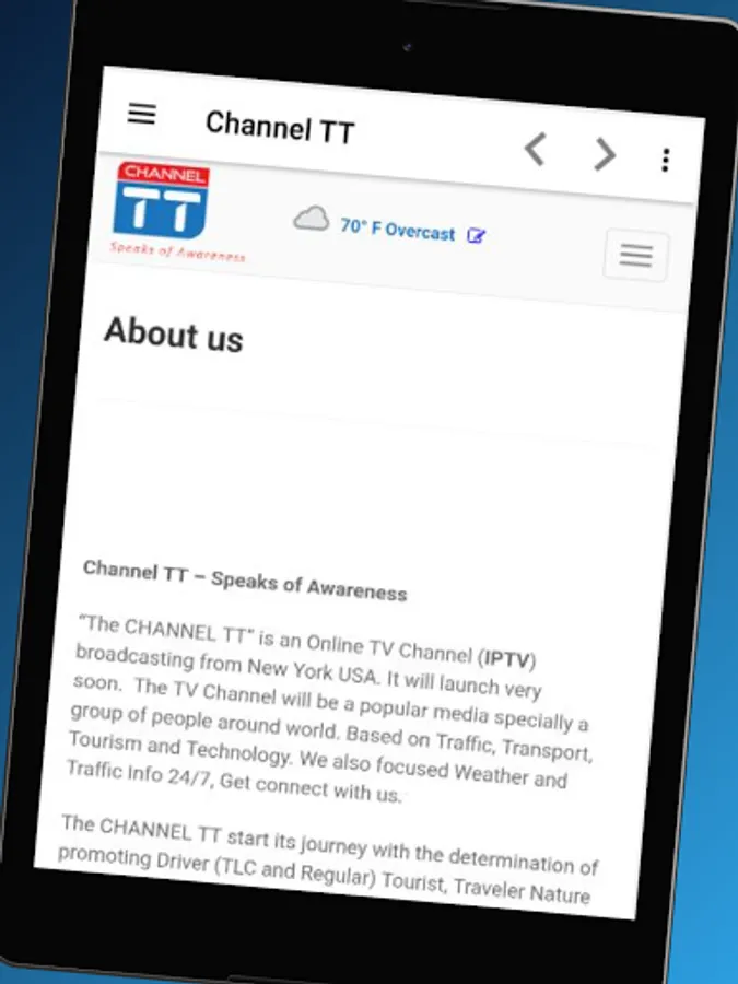 “The CHANNEL TT” is an Online TV Channel (IPTV) broadcasting from New York USA. The TV Channel will be a popular media specially a group of people around world. Based on Traffic, Transport, Tourism and Technology. We also focused Weather and Traffic Info 24/7, Get connect with us.