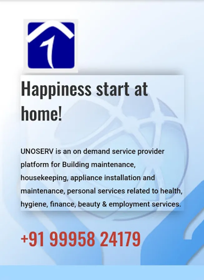 Happiness start at home! UNOSERV is an on demand service provider platform for Building