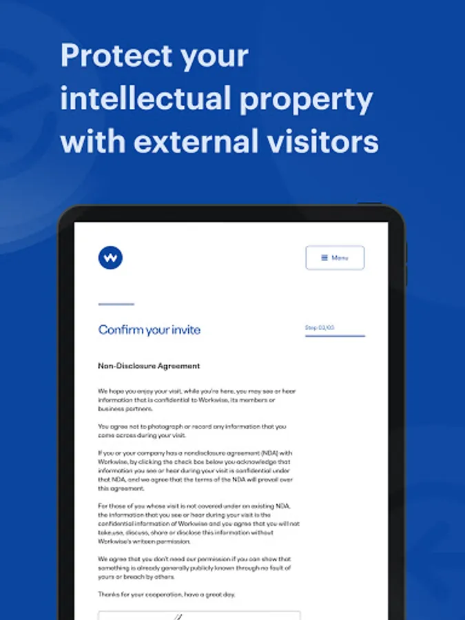 Welcome visitors to your workplace with the Workwise visitor management system. It enhances your front desk’s efficiency by allowing guests securely check-in and check-out of your office premise whilst creating a lasting visitor experience!