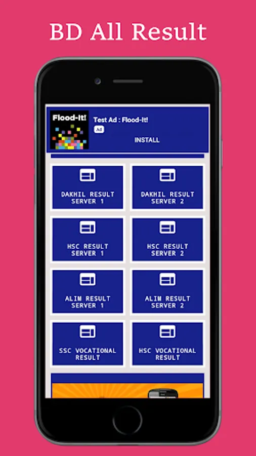 (2) You can 1st open the "BD Result: BD All Board Result" app, then the "Click for hsc result" option and you can see hsc result server 1 and hsc result server 2. You can take dakhil exam result from any server by inputting necessary information.
