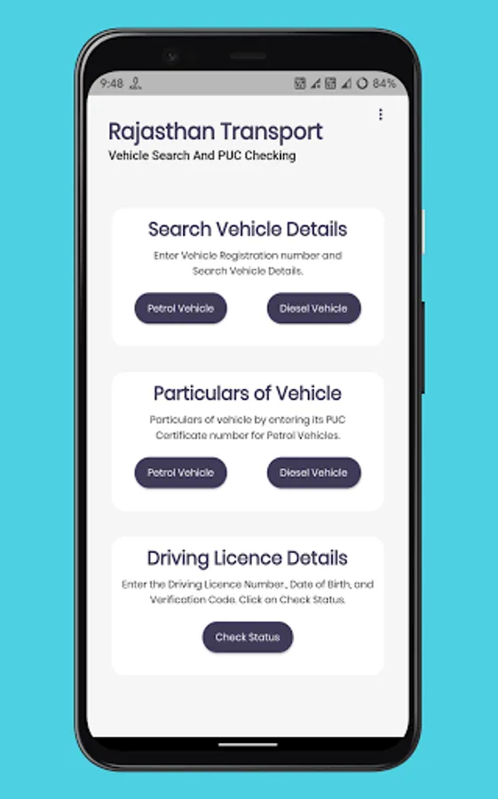 Get all the details related to any vehicle which comes under Rajasthan state RTO and all the details related to your driving license and learning license.