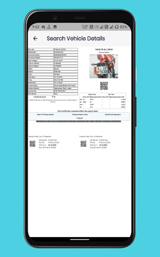 The app gives following Rajasthan RTO vehicle registration info details by using vehicle number and all information owner.