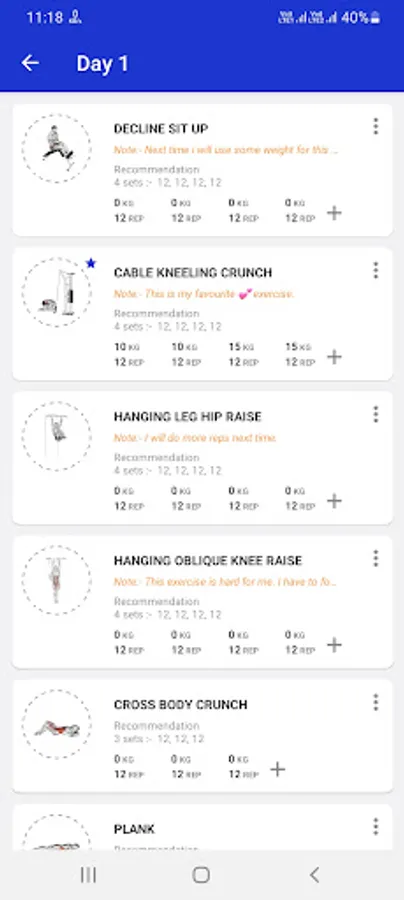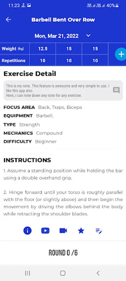 ● You can log your weight & reps of each and every exercise for your record and analysis.