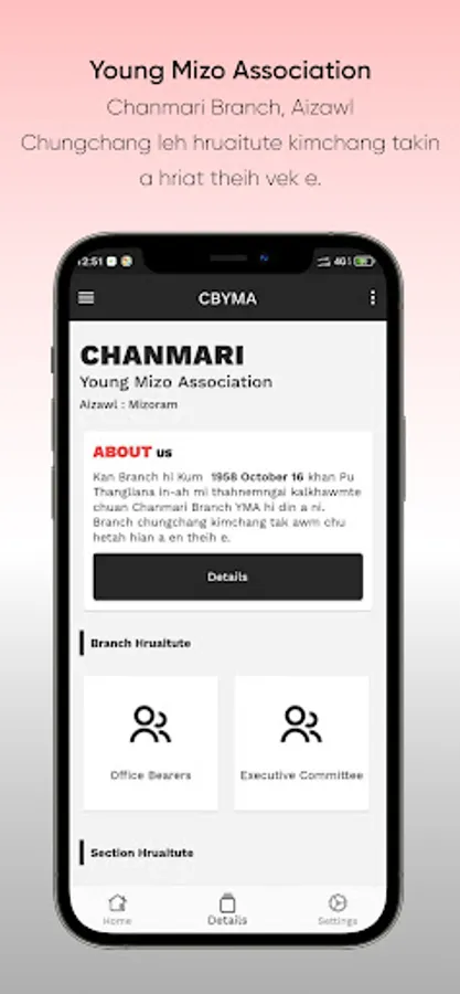 He Mobile Application hi YMA, Chanmari branch hman tura siam a ni angin, member ni lem lo te pawh a signup theih vek a, tih changtlun zel pawh tum a ni.