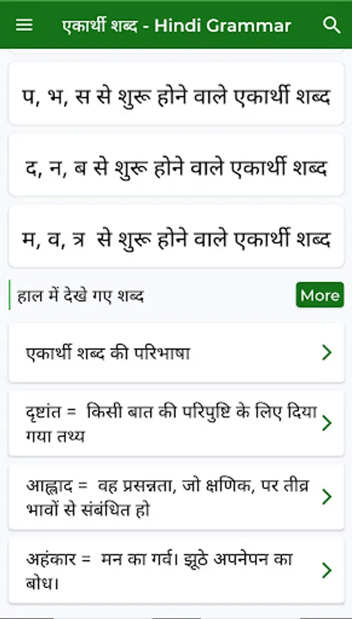 यह एप स्कूली छात्रों और जो विभिन्न प्रतियोगिता परीक्षाओ के लिये तैयारी कर रहे है के लिए बनाया गया है इसमें दिए गए महत्वपूर्ण शब्द एकार्थी शब्दों के ज्ञान को बढ़ाने में सहायक होंगे