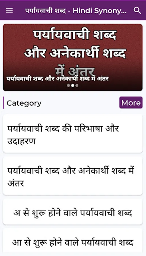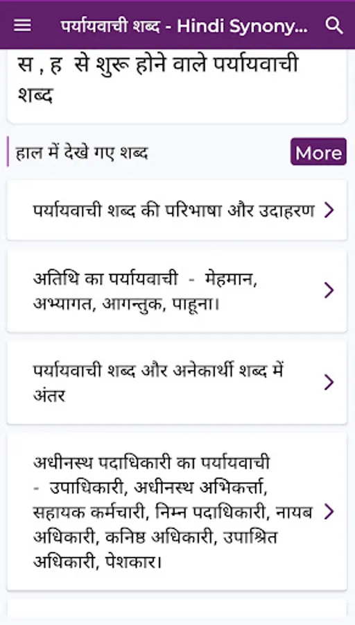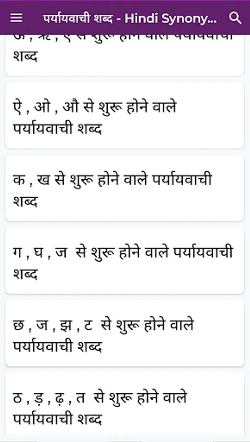 Synonyms words app for hindi grammar helpful to strong your preparation regarding various competition exams and it has valuable content i.e your knowledge about hindi synonyms words makes in depth