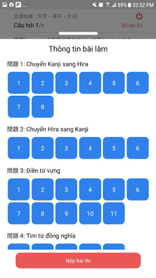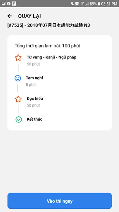 Users can access to practice tests in standard structure of the Japanese-Language Proficiency Test (JLPT).