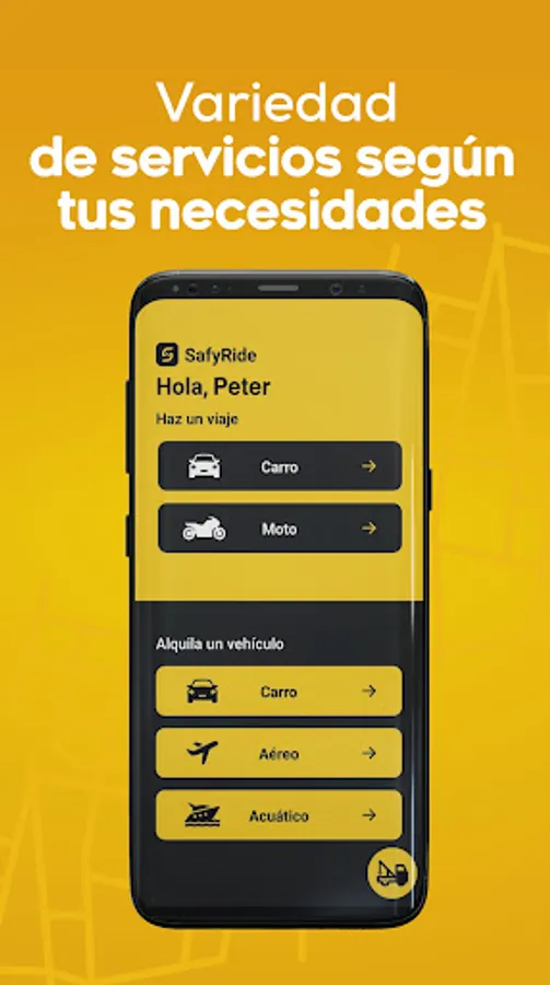 Discover the freedom of traveling anywhere with SafyRide. With the simplicity of requesting a vehicle from your mobile, we guarantee a more comfortable, safe and affordable transport. Explore at your own pace with SafyRide, the safest mobility platform today. At SafyRide, you are our priority. We provide a wide range of services designed to meet your transportation needs, whether by car or motorcycle. Install now the SafyRide application and experience a high quality, profitable and safe service.