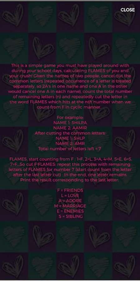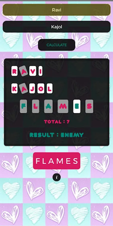 FLAMES: repeat this process with remaining letters of FLAMES for number 7 (start count from the letter after