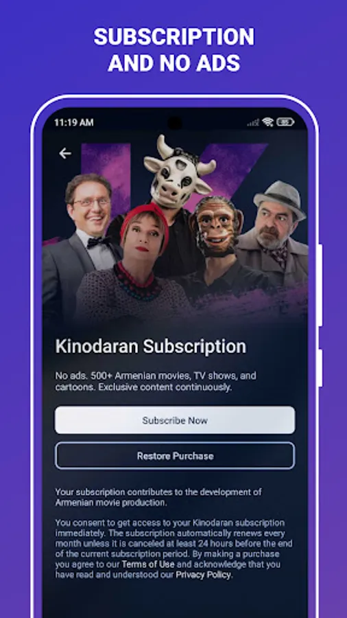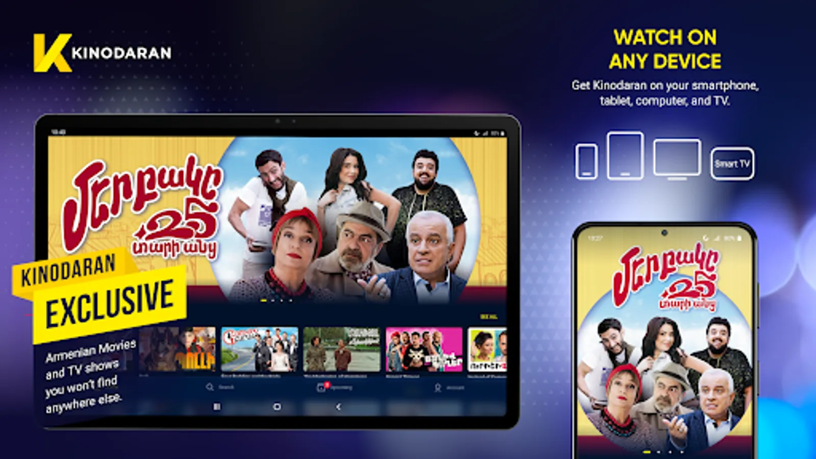 Watch exclusive and popular Armenian movies, TV shows and cartoons all in one app, Kinodaran.