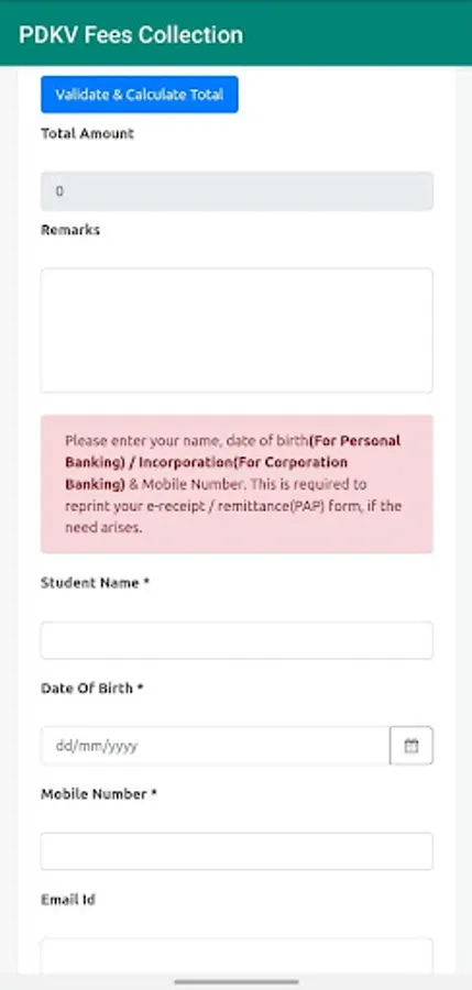 PDKV Fees Collection Screenshots