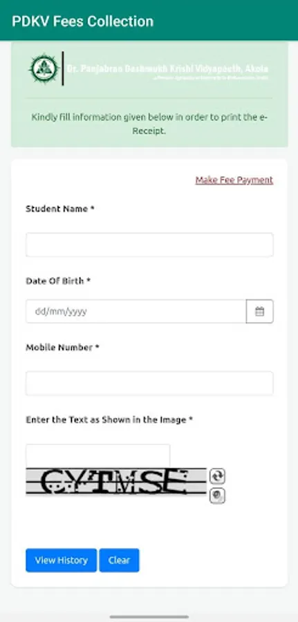 Using this app students of Dr. Punjabrao Deshmukh Krishi Vidyapith, Akola can make payment of the fees for their enrolled colleges and courses.