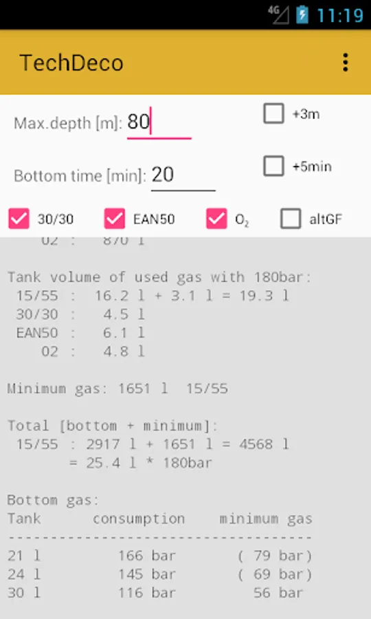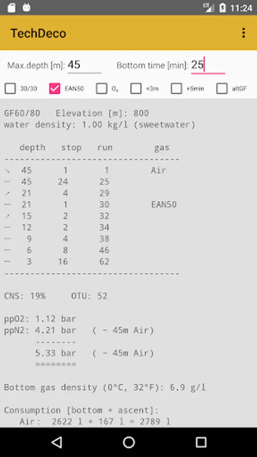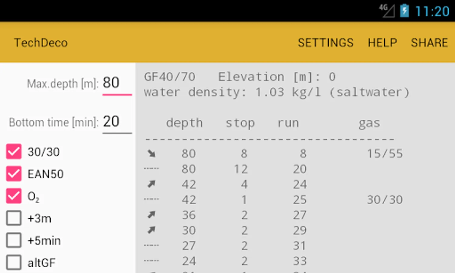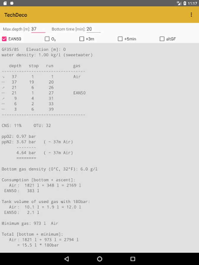 A free app for calculating decompression profiles and gas consumption for technical divers.