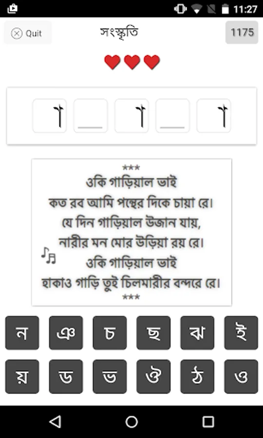 Expand your Bengali vocabulary with this hangman-style Bengali word game!