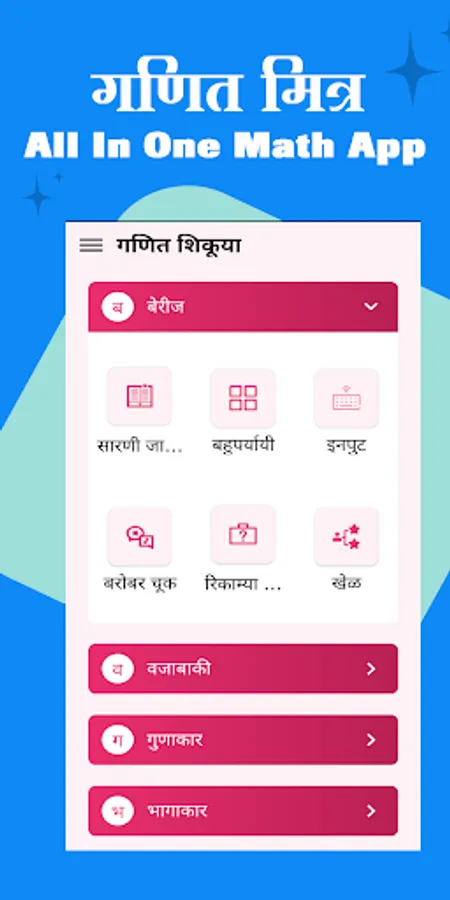 बेरीज , वजाबाकी, गुणाकार , दशांश अपूर्णांक , वर्ग , वर्गमुळ , घन , घनमूळ यासारख्या सर्व क्रिया एकाच ठिकाणी ......