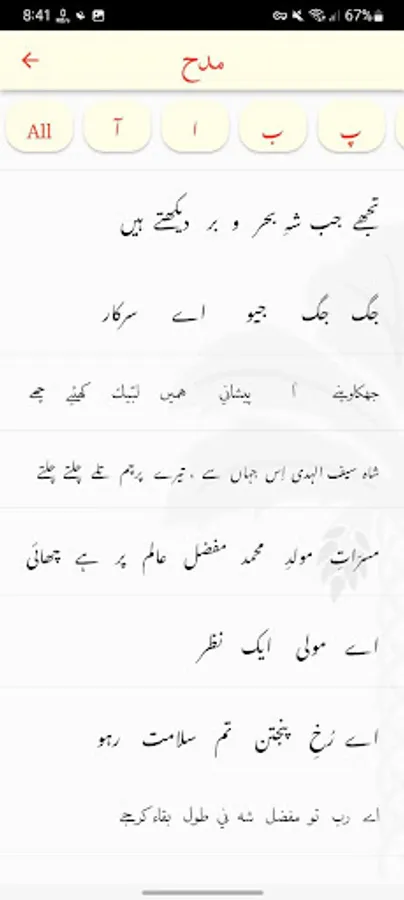 A specially curated list of Nasihat, Madeh, Salam, and Marasiyah is available in this app for easy reading.
