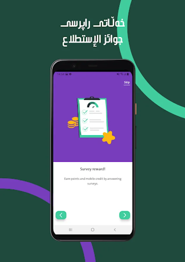 ئێمه دهربارهی كۆمهڵه بابهتێكی زۆر فراوان پرسیاردهكهین و پاره و خهڵات دهبهخشین به بهشداربووانی ئەپلیکەیشنەکەمان.