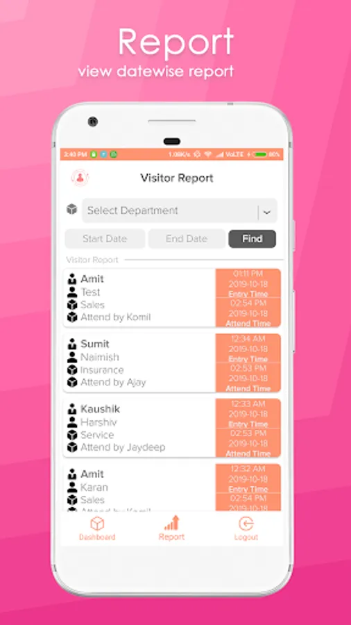 The executive will be able to see the report of the visitor who has been attend to them. It will see their report till it’s time limit.
