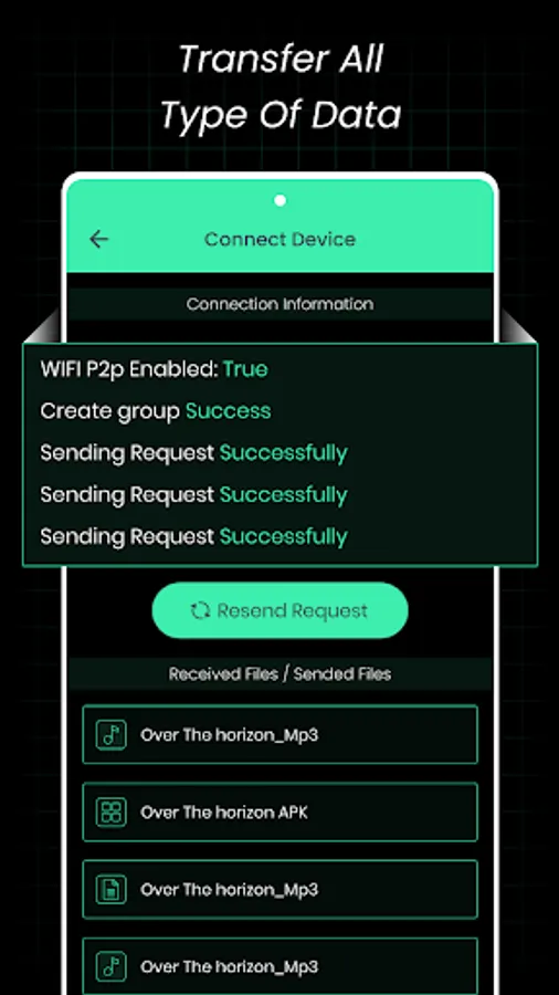 ● Transfer any type of Files, Document, photos, videos, Apk files.
