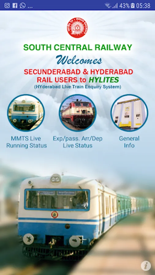 HYLITES (Hyderabad Live Train Enquiry System) is a next generation technology initiative from South Central Railway to provide real - time information on the current status of running of Multi Model Transport System (MMTS) trains over 26 MMTS stations of Hyderabad and Secunderabad for the benefit of rail users. This App also provides the actual arrival/departure timings of express/passenger trains and their nominated platforms at the three major passenger terminals - Secunderabad, Hyderabad and Kacheguda stations. In addition, this app contains useful information required by the rail passengers in general on a host of other subjects