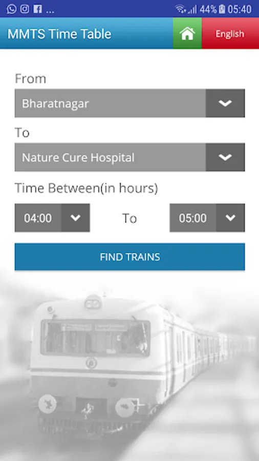 This allows you to view a detailed time schedule of MMTS Trains by selecting the “From” and “To” stations during a selected duration.