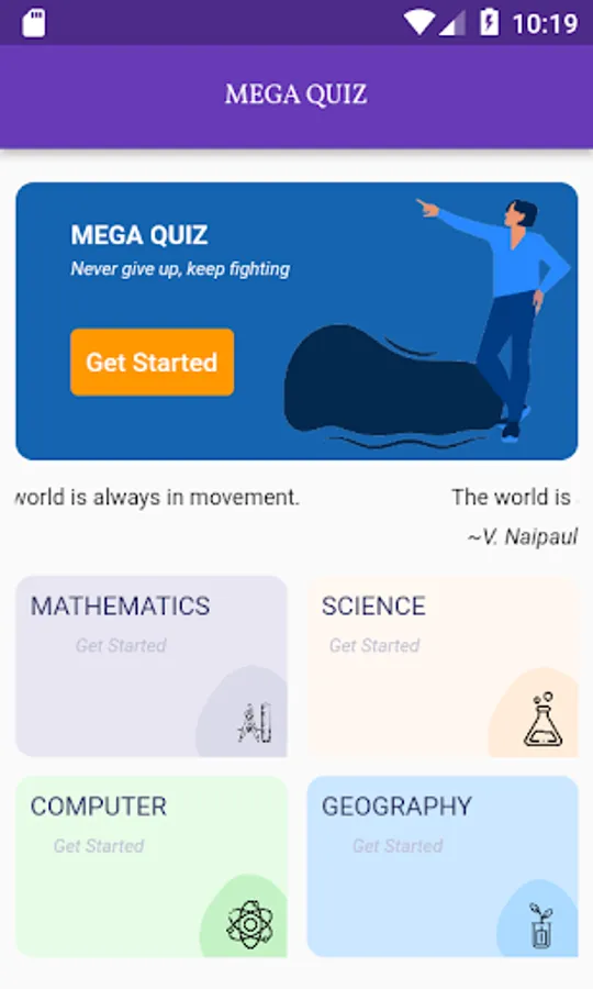 Mega Quiz is a collection of different types of quizzes like technical, games, sports etc.