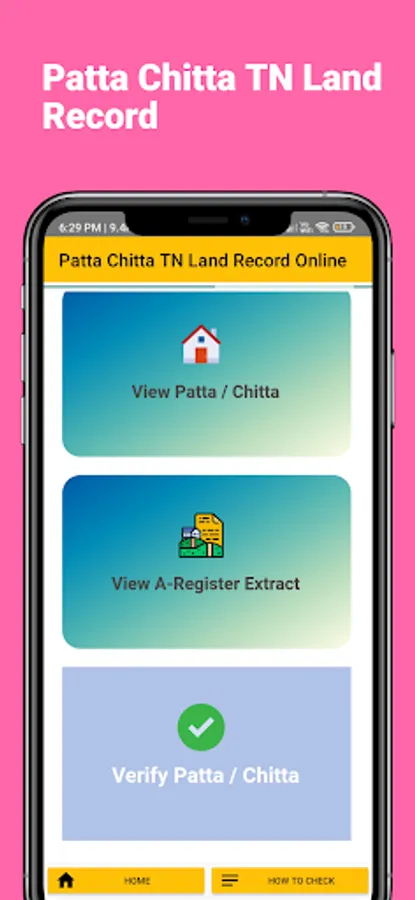 how can i check Tamil Nadu Land Record? First Install This Tamil Nadu Land Record app. After Successfully Installed. Open The App Click check Tamil Nadu Land Record Button for view your land record online