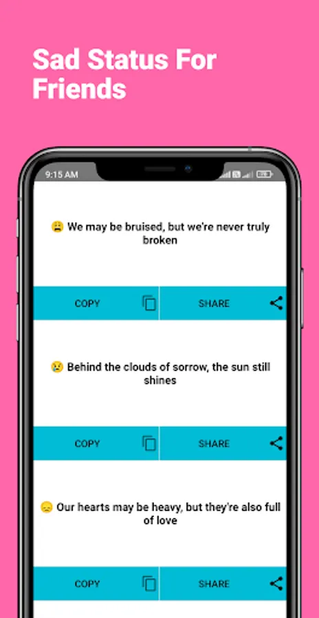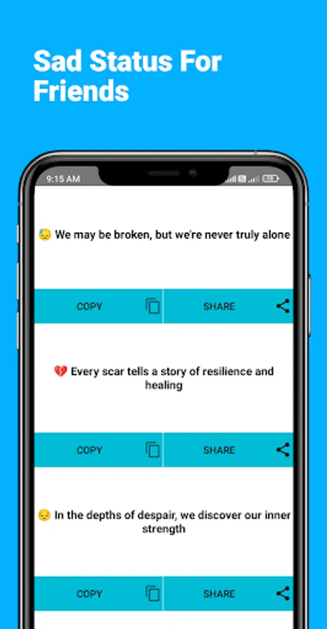 First Install This Sad Status For Friends app. After Successfully Installed. Open The App Click View Status Button for Get Sad Status For Friends.