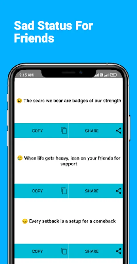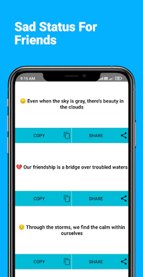 * This application is Essay To Use. This Sad Status For Friends app is a best small size app.