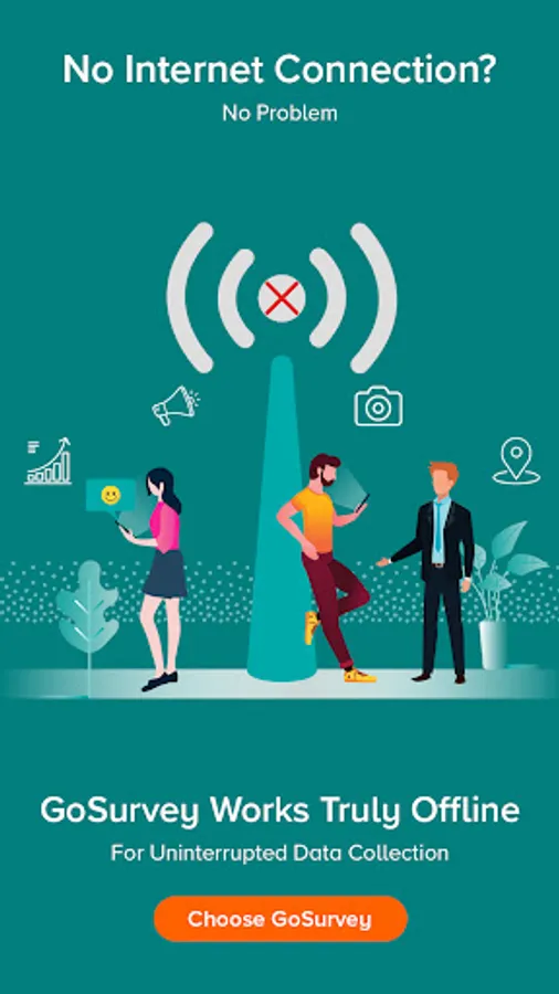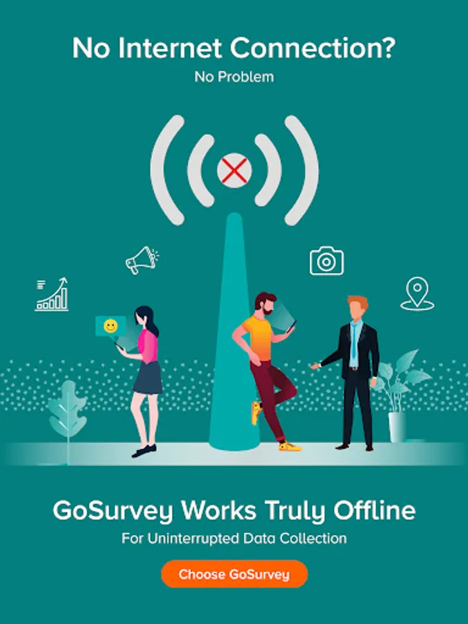 ◾ Pick your phone/tablet and travel across zones to study your field of business or know your audience better - GoSurvey is an offline survey app that enables FIELD DATA COLLECTION without an internet connection.