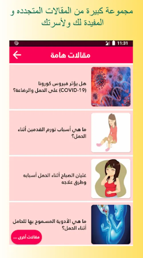 The program is considered a pregnant woman’s guide that contains details about pregnancy and childbirth, and the mother is pregnant, by detailing the weeks of pregnancy, the months of pregnancy, and symptoms of pregnancy, follow-up pregnancy week by week, as it is equipped with pictures of the fetus, and topics about pregnant food, and through it can be calculated Fetal kicks, pregnancy contractions.