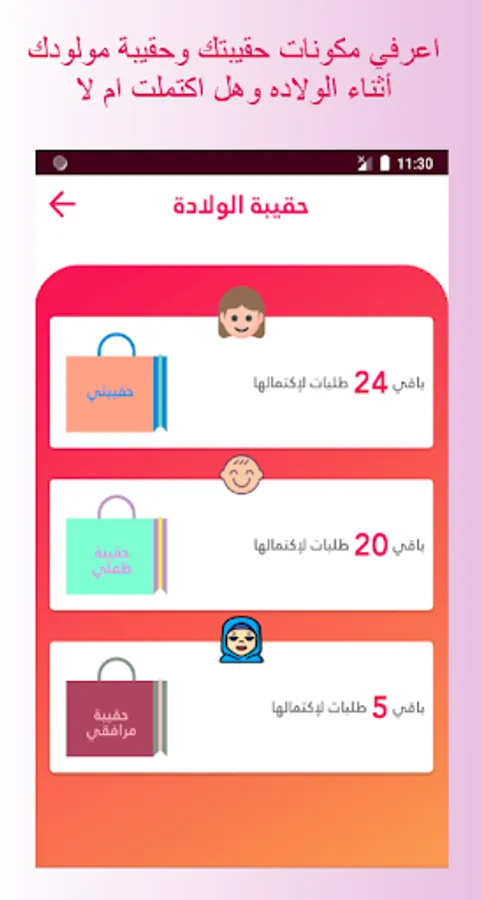 Add the birth bag tool to know your needs and your baby at the time of birth and follow up on what you lack