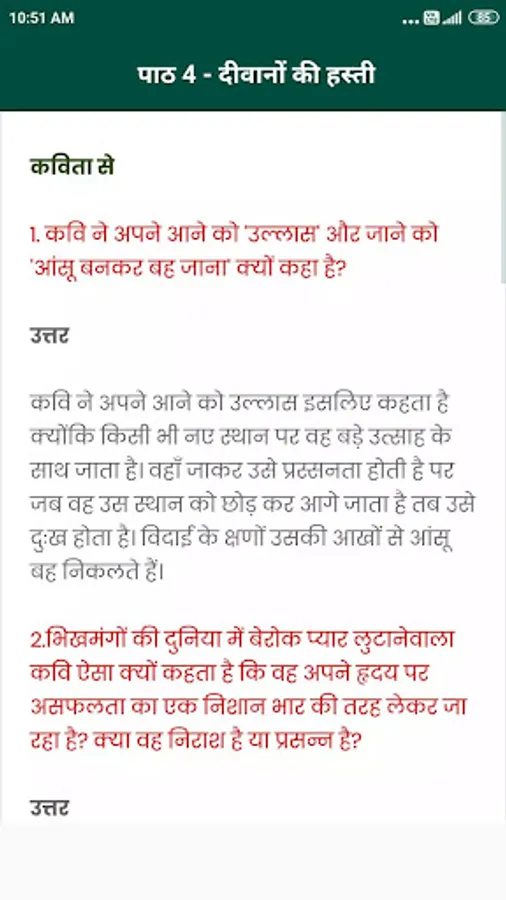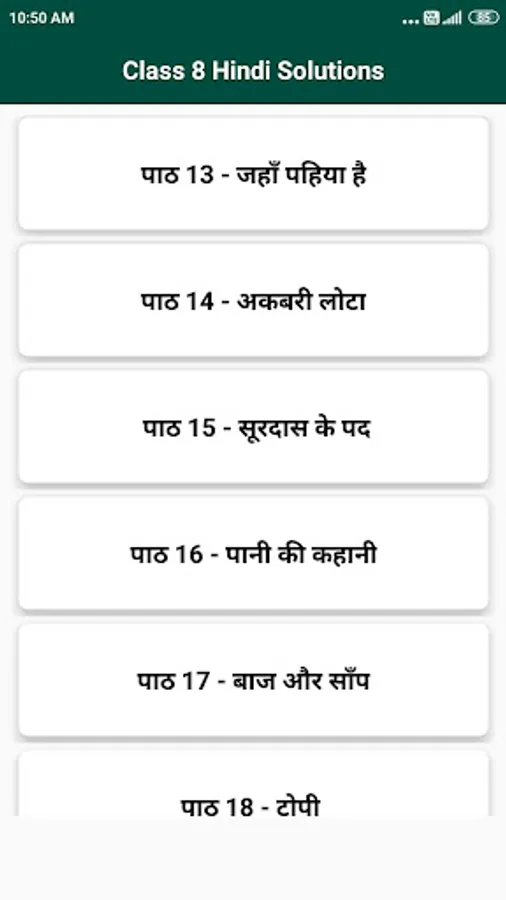 NCERT Solutions for Class 8 Hindi Vasant Application में हमने सारे सवालों को शामिल किया है जो भी NCERT की 8th Class की Textbook में दिए गये है।