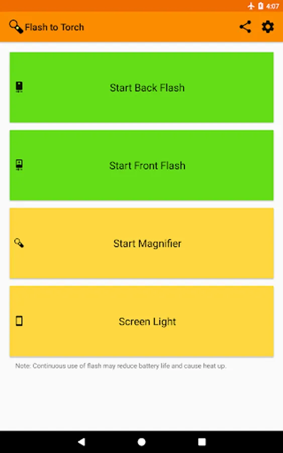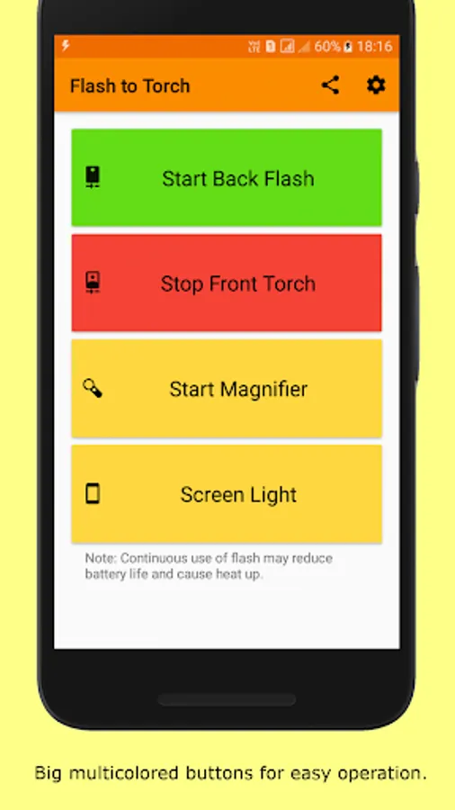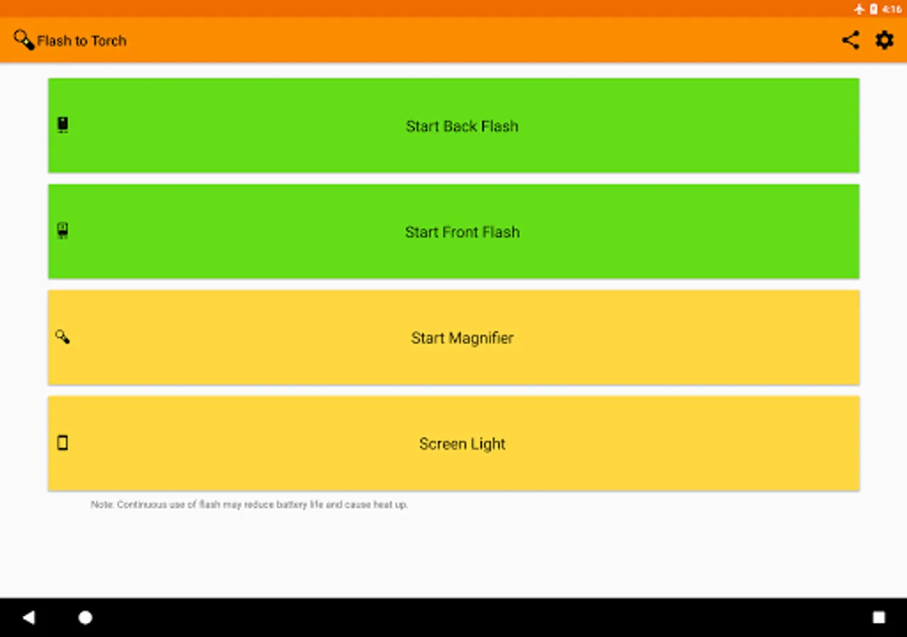 • Use front torch on devices with bigger front flash than back flash.