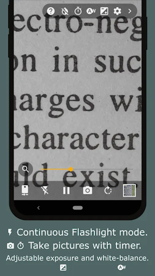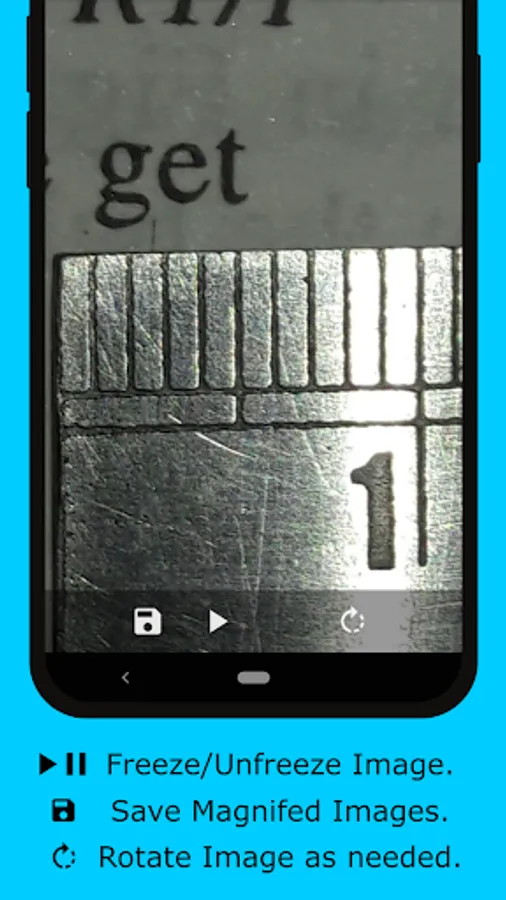 Unleash the true power of camera with software zoom in an easy to use magnifier with flashlight. Pause magnifier midway and capture magnified images.