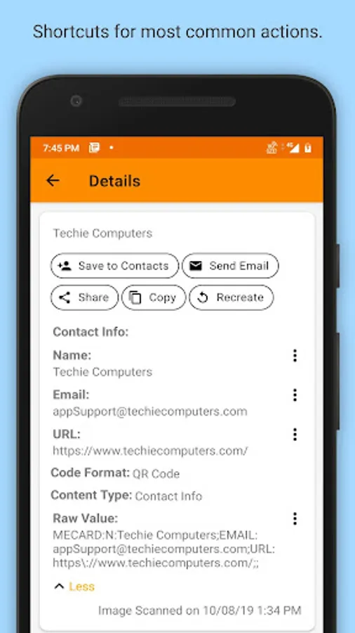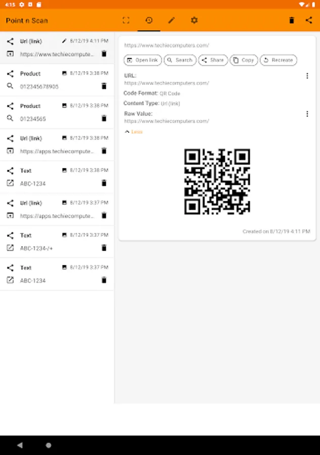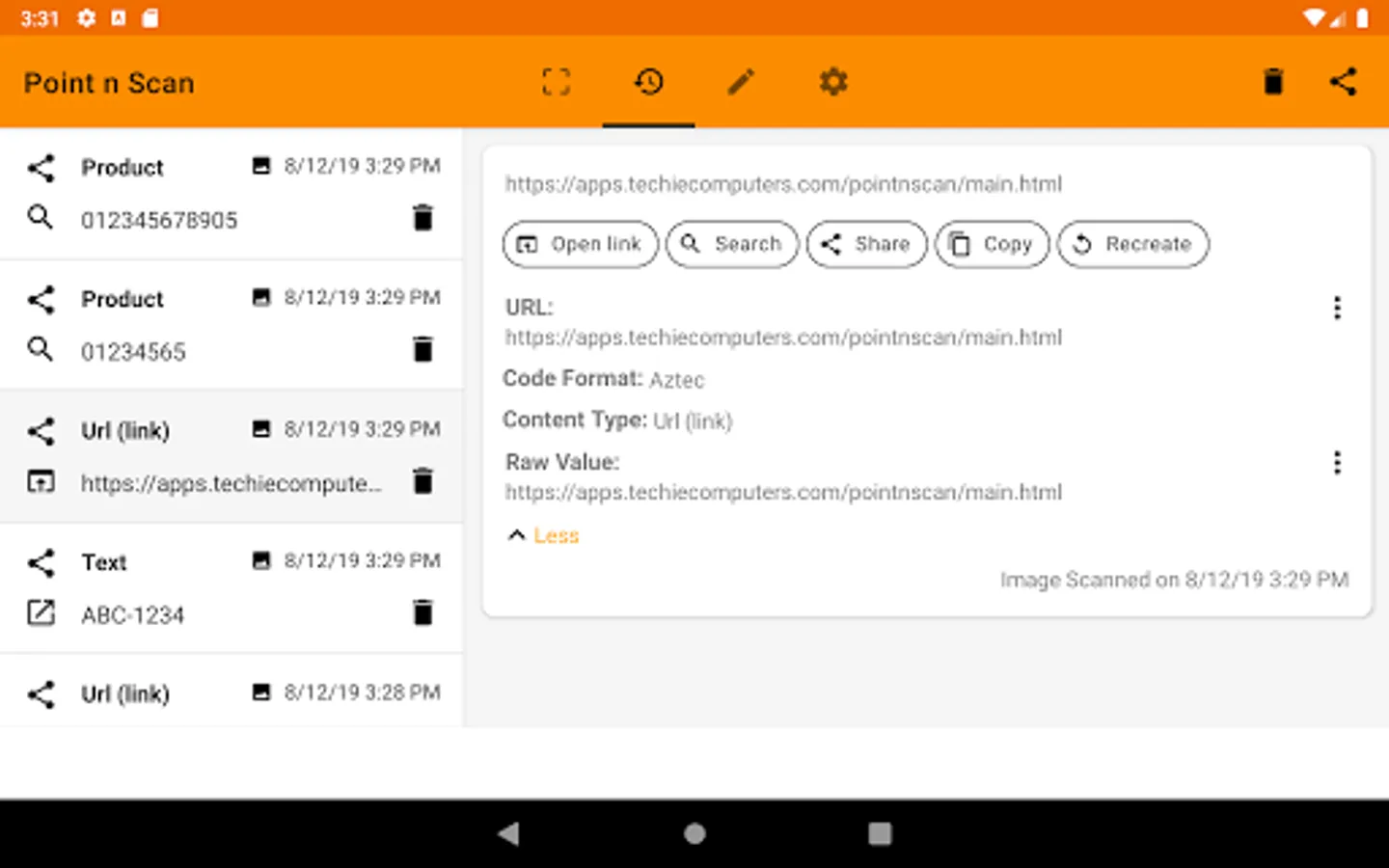 ✔ Easily share complex data of scanned QR codes using links, that opens in browser as well as this app.