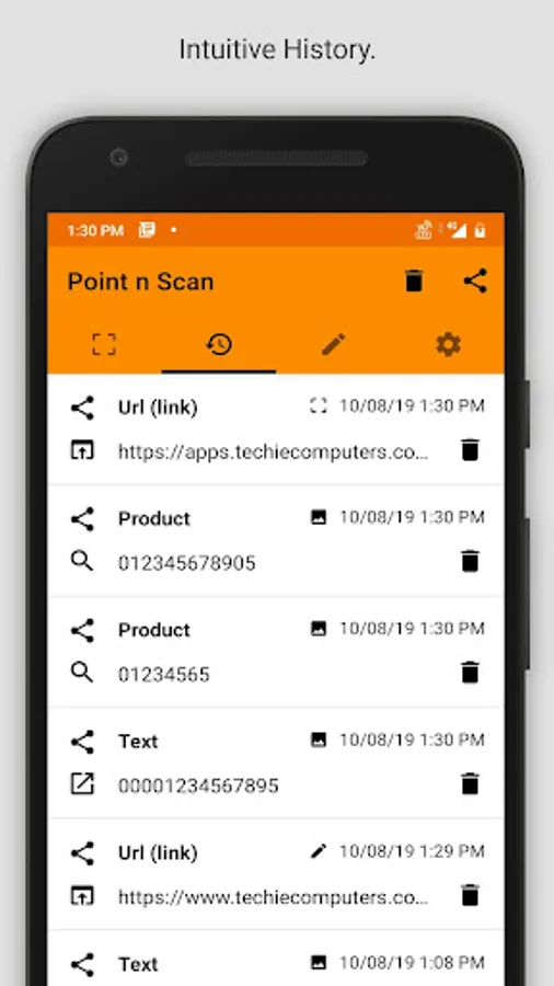 ✔ Intuitive history that remembers created, opened and scanned codes.