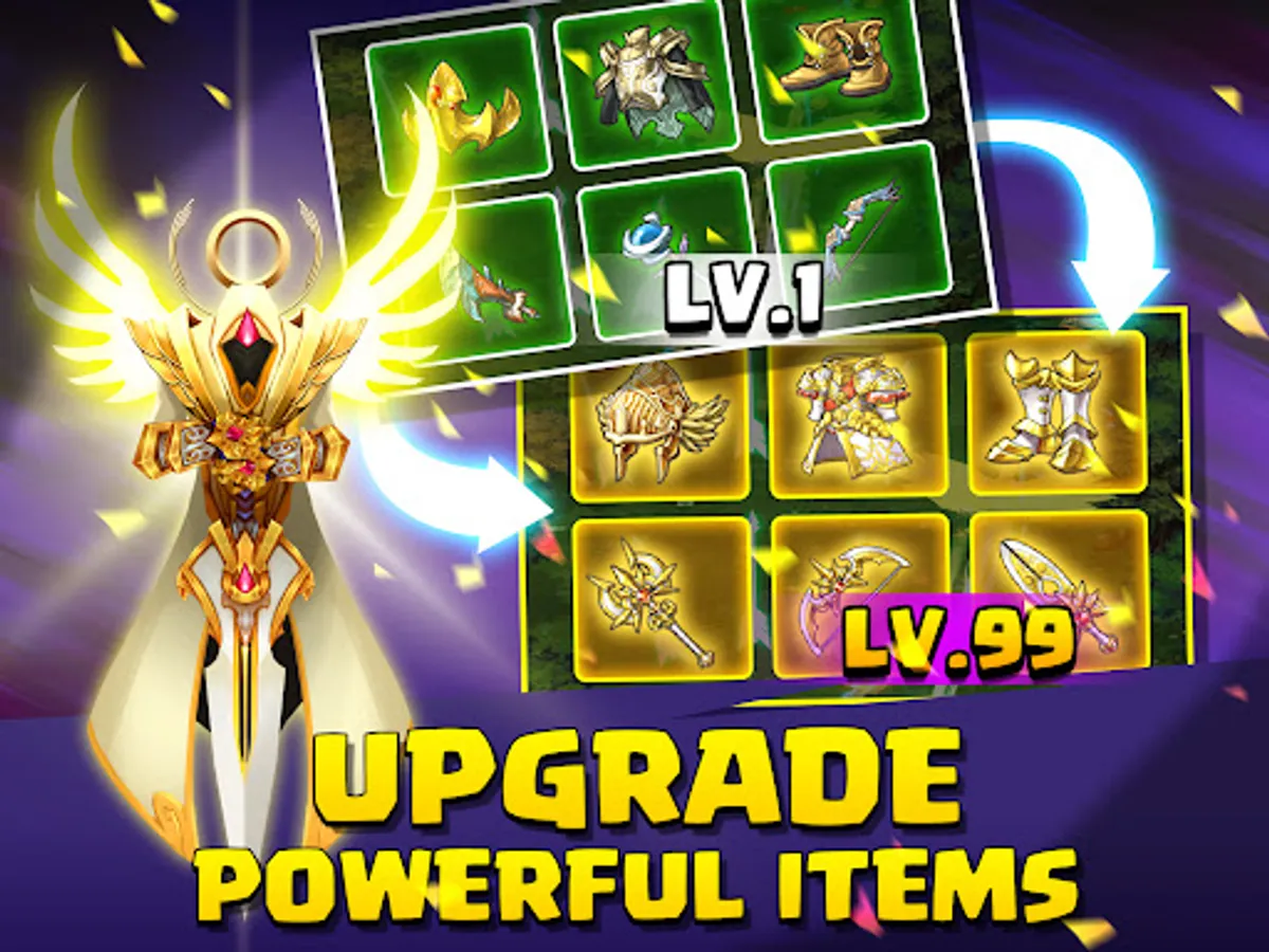 - Level up your hero, collect support ones, upgrade skills and items to strengthen your formation.