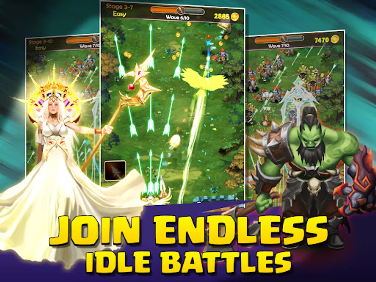 - Diverse skill system and heroes: you can create a team of different heroes, skills and classes. Smash enemy waves with your formation.