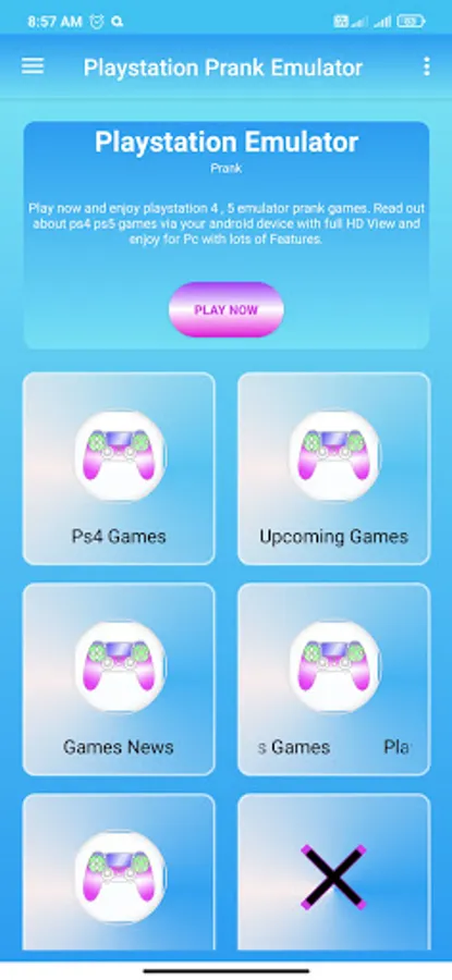 Note - This app will not play any ps4 games. Only purpose of this app is to provide the some entertainment to make your friends prank by showing them this app Ui like latest games name , upcoming games name & play etc..