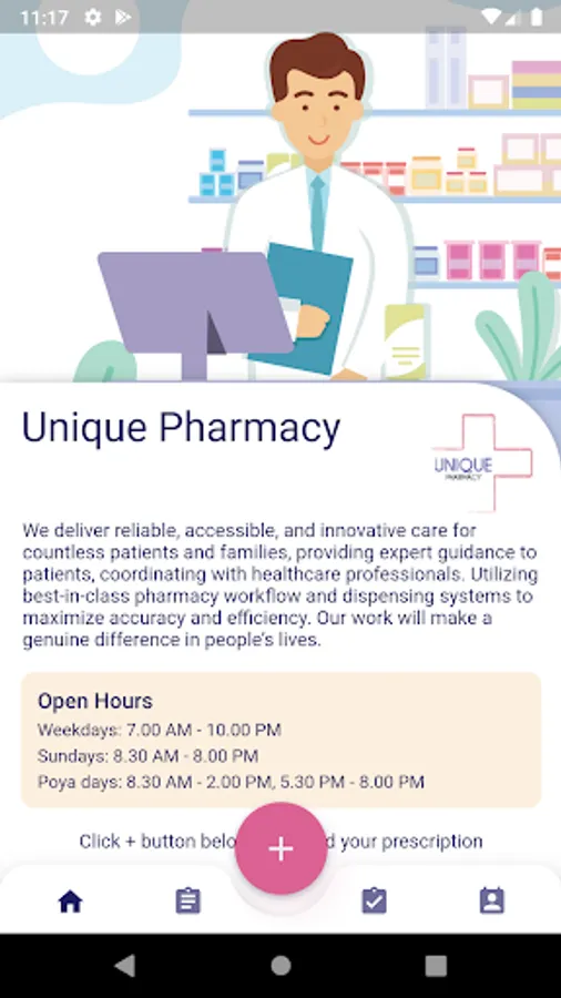 Unique Pharmacy application will allow patients to place orders for their medical needs. Patients will be able to upload their prescriptions through the application so that we can process their orders and keep it ready for them for hassle free pickups. Patients will be able to keep track of their orders, receive instant updates on their orders and communicate with the pharmacy regarding their order. Patients will have the app in their hand when they walk in and will show the order number to the counter where they can pay the bill amount and collect their medicine and walk away. This will cut down the time customers spend in queues and will increase the efficiency of the pharmacy operations improving our standards of customer service.