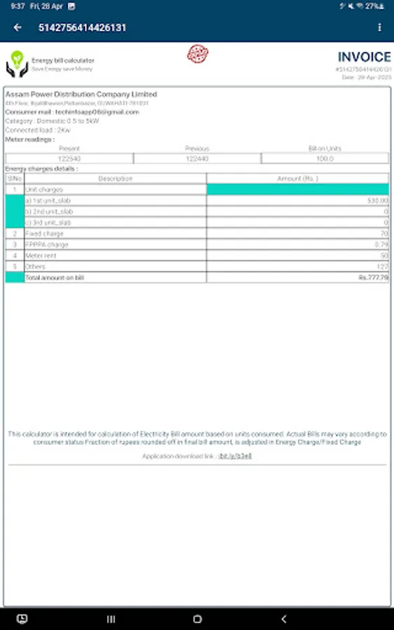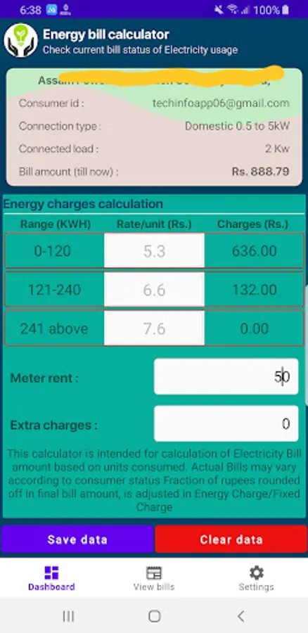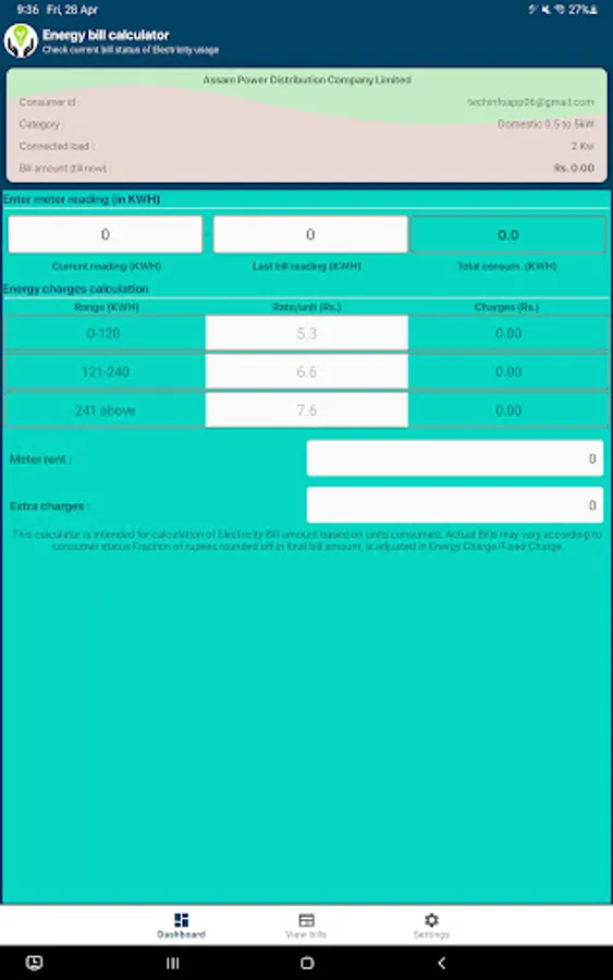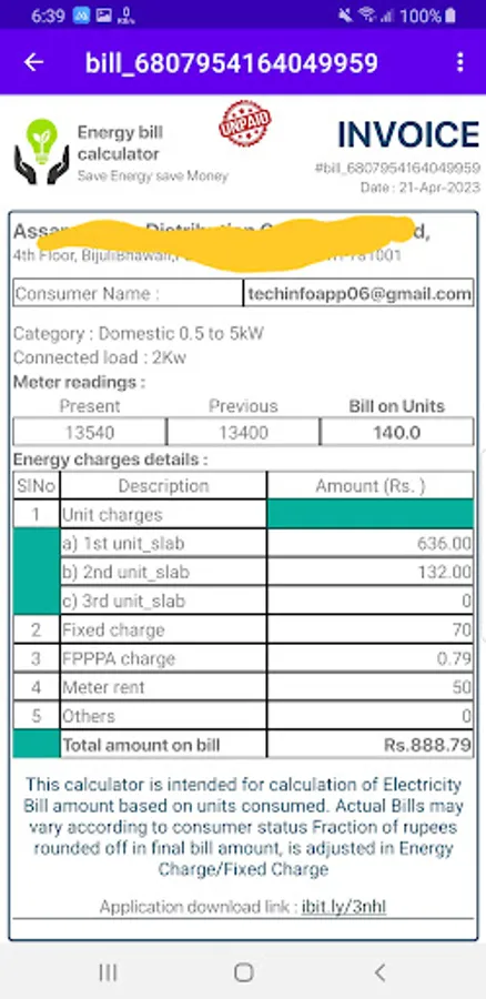 This calculator is intended for calculation of Electricity Bill amount based on units consumed. Actual Bills may vary according to consumer status Fraction of rupees rounded off in final bill amount, is adjusted in Energy Charge.