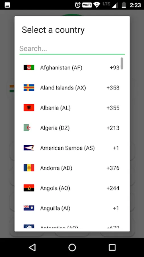 1) Select the country code from the drop-down list.