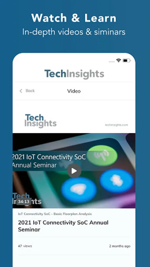 Learn about the latest advancements in technology industries through exclusive access to TechInsights seminar videos where subject matter experts share their findings and insights. Video versions of guides and product overviews are available for TechInsights subscription products.