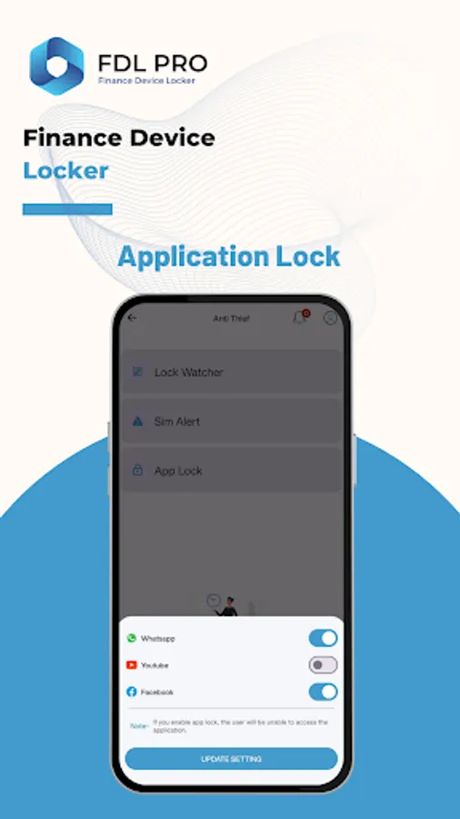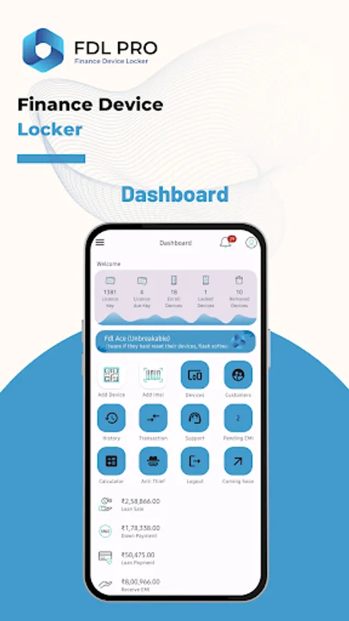 FDL Pro is an advanced technology that helps to secure equated monthly installment (EMI) payments for finance devices. Retailers can lock over due EMI customers' devices in realtime. In the process of secure payments, the satisfaction of retailers is the most important and the focus is on reduced collection costs and timely EMI payments.